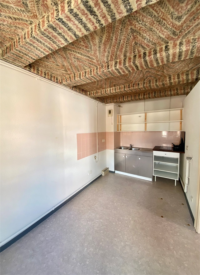 Une entrée, un lumineux séjour avec fresque d’époque au plafond, une belle chambre, une cuisine séparée aménagée et semi-équipée, une salle d’eau avec douche et WC séparés.