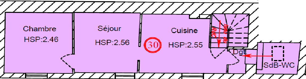 Logement au calme donnant sur cour, composé d’une cuisine, d’un séjour, d’une chambre, et d’une salle d’eau avec WC.