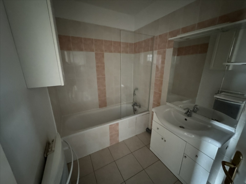* Un séjour avec un accès sur une grande terrasse privative d’environ 20m², une salle de bains avec baignoire et meuble vasque,