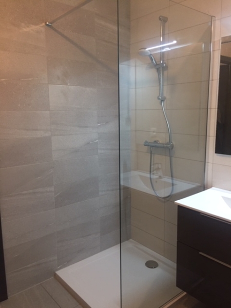 * Une salle d’eau avec douche, meuble vasque et emplacement pour une machine à laver,
