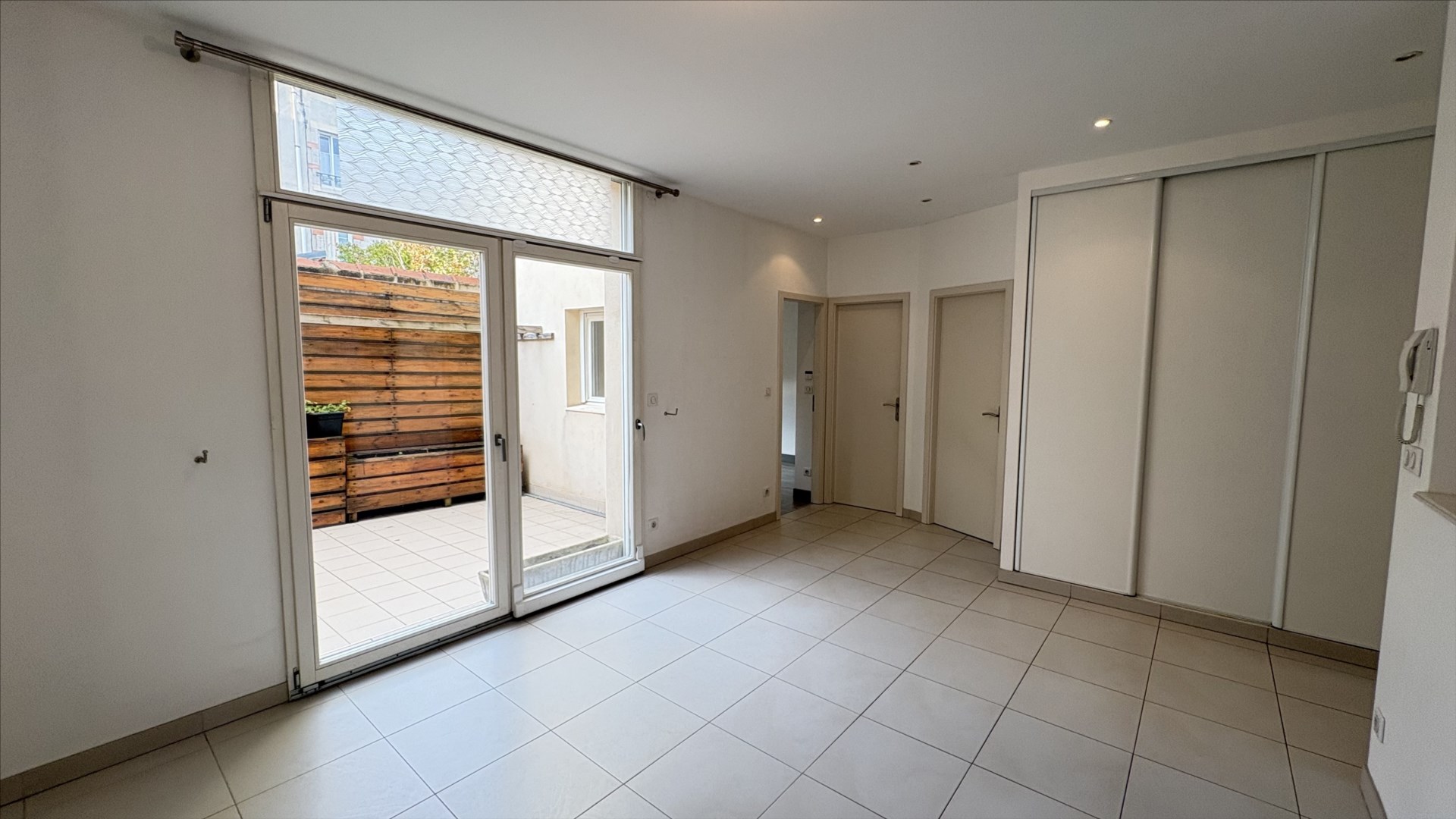 Situé au rez-de-chaussée d’un petit immeuble sécurisé, il se compose d’une entrée, d’une cuisine équipée ouverte sur séjour donnant sur une vaste terrasse, de 2 chambres, d’une salle d’eau, d’un WC séparé et d’une buanderie.
