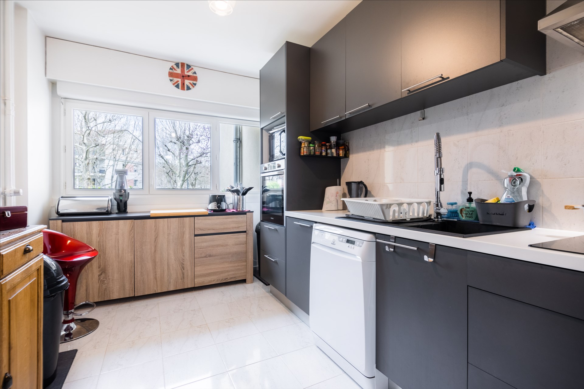 Situé au RDC d’un immeuble très bien entretenu, il se compose d’une entrée avec placard, cuisine équipée, séjour avec balcon, salle de bains, Wc séparé, buanderie et 3 chambres.