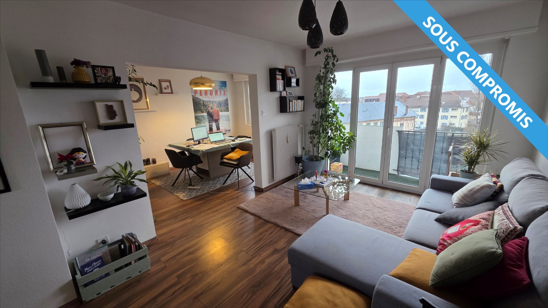 À vendre en exclusivité par votre agence TRIPLEX de Colmar. À proximité immédiate du centre-ville (rue des Laboureurs) dans une résidence calme et bien entretenue, un 2/3 pièces traversant Nord/Sud de 60m² comprenant :