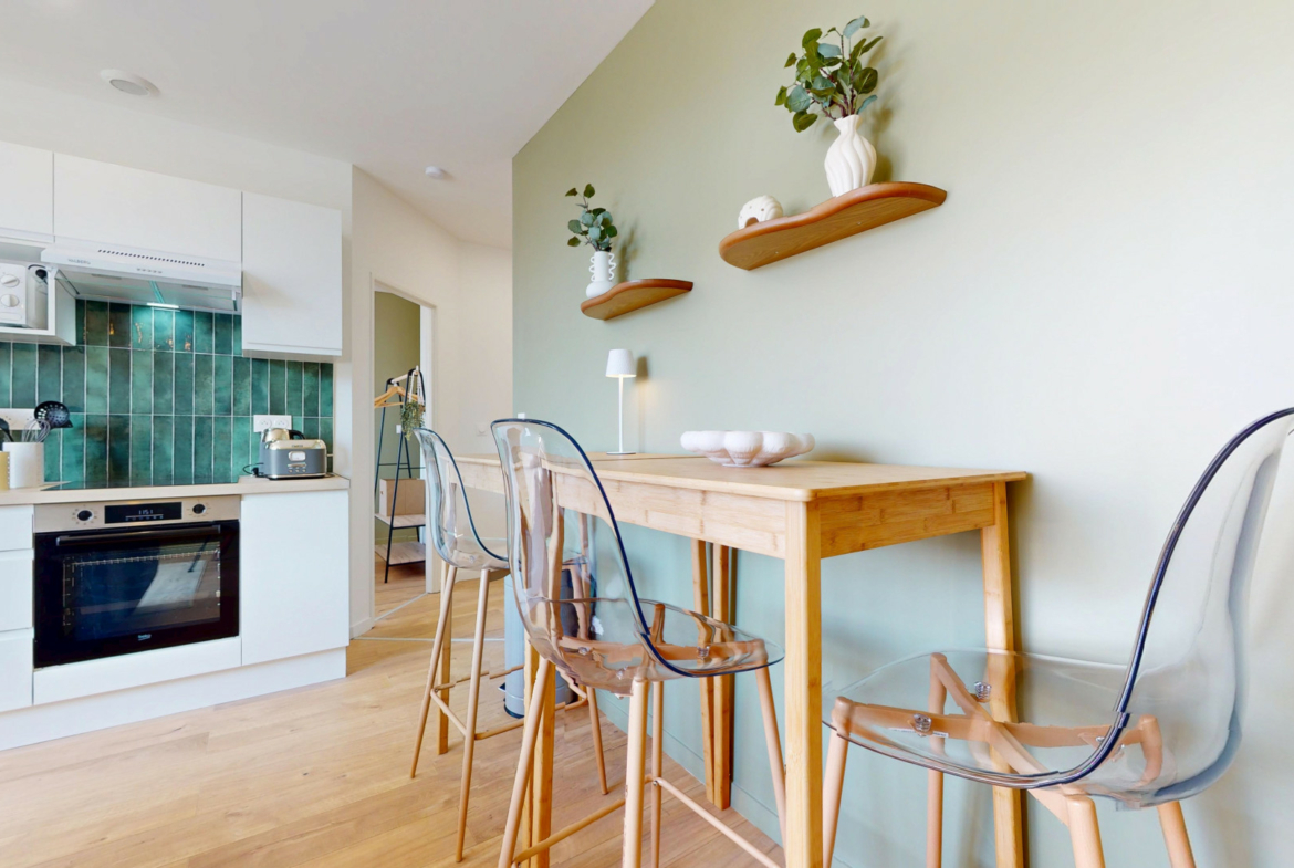 L’appartement se compose d’une grande pièce à vivre ouverte sur une cuisine équipée.