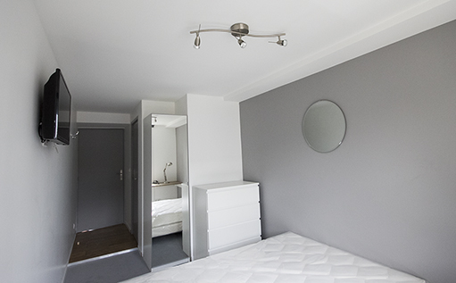 Chambre individuelle de 13.67m² avec salle d’eau et wc privatifs.