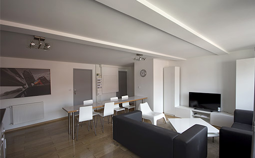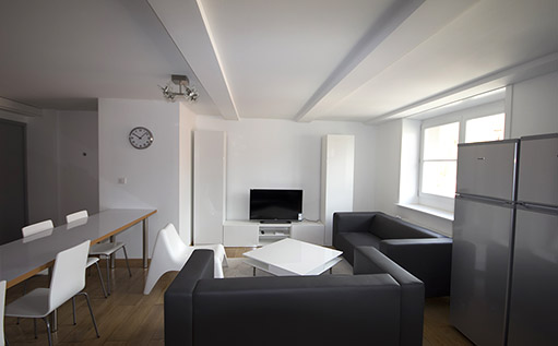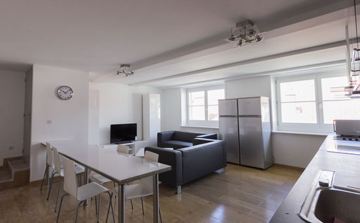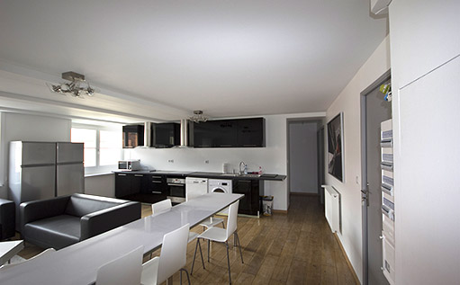 Situé au 4ème étage d’un petit immeuble ancien idéalement situé en plein centre ville, il se compose d’une vaste pièce de vie avec cuisine équipée ouverte sur le salon / salle à manger, 5 chambres fermées et individuelles.