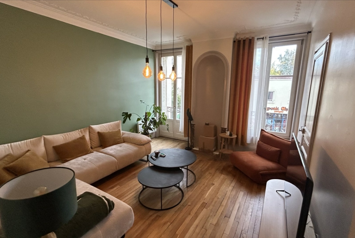 Appartement très lumineux car traversant, belles hauteurs sous plafond, cheminée décorative et charme de l’ancien.