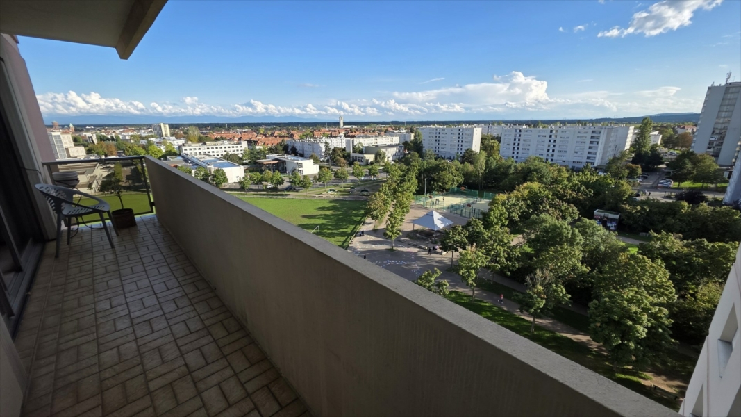 – Au 9ème étage avec ascenseur : une entrée avec placards, WC séparé, une cuisine indépendante, dégagement, vaste séjour de 40m² (possibilité d’y créer une 3ème chambre) avec accès sur un balcon offrant une belle vue dégagée, 2 chambres dont une avec balcon (11m² et 16m²) et 1 bureau (7m²), une salle d’eau.