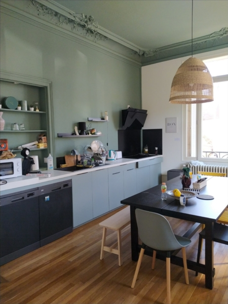 Situé au dernier étage dans une magnifique maison de Maître de 300m² dédiée à la colocation, chaque studio dispose d’une grande chambre meublée (lit 160×200, rangements, coin bureau…) salle d’eau et WC privatif.