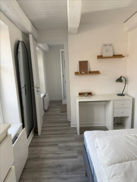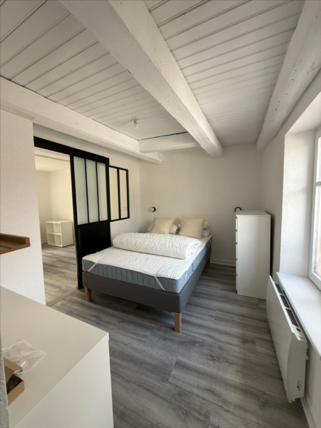 Situé au 3ème et dernier étage d’un petit immeuble, il se compose d’une entrée avec placard, une cuisine équipée ouverte sur la pièce de vie, une chambre avec rangement et bureau, une salle d’eau avec WC.