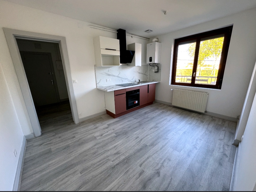 Une entrée avec placards de rangement, un séjour, une cuisine séparée avec kitchenette comprenant plaques de cuisson deux feux, hotte, réfrigérateur avec partie freezer et placards de rangements, un balcon donnant sur la cour, salle de bain avec douche et meuble vasque.