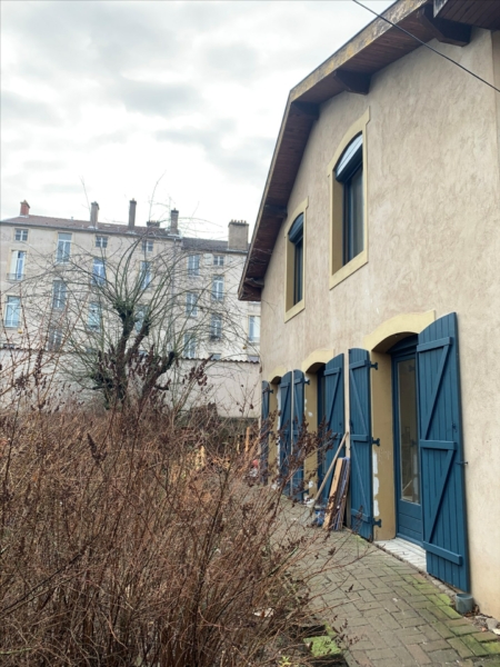 Maison mitoyenne d’environ 71.43 m² située en retrait de la rue avec petit jardin.