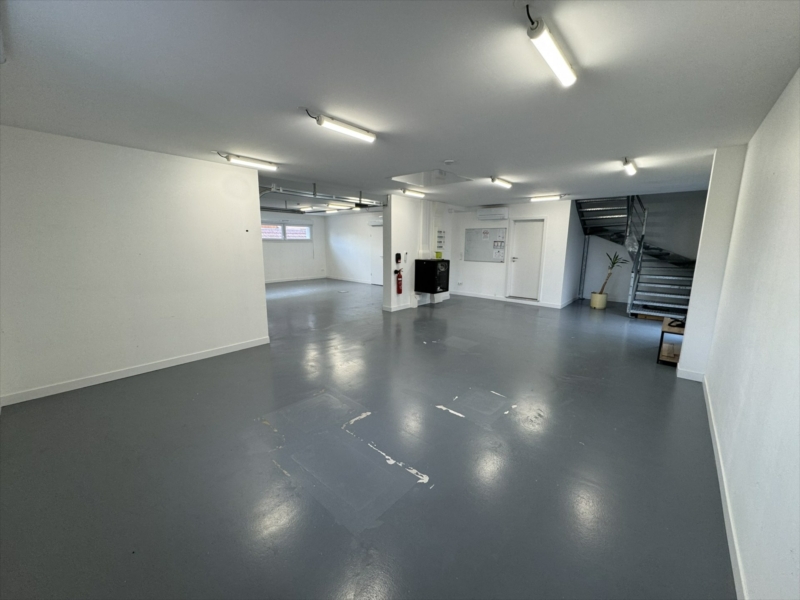 * A l’étage, un premier espace ouvert pouvant servir de stockage mais également de bureau (26,52 m²), un spacieux et lumineux open-space d’une surface de 54,54 m², une pièce cloisonnée de 5,20 m², une pièce aveugle de 7,50 m² (servant de labo photo actuellement), un espace kitchenette de 8m², une pièce archives de 8,39 m², des toilettes et un balcon de 8 m².