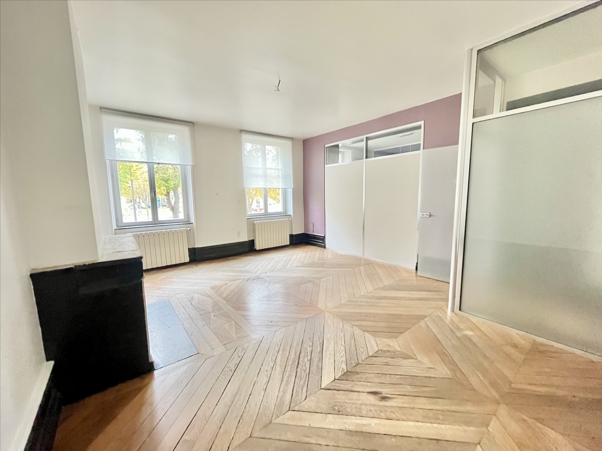 Situé au 1er étage d’un bel immeuble ancien, ce local spacieux d’environ 80 m² bénéficie de beaux volumes, de hauts plafonds, de moulures et de parquets anciens.