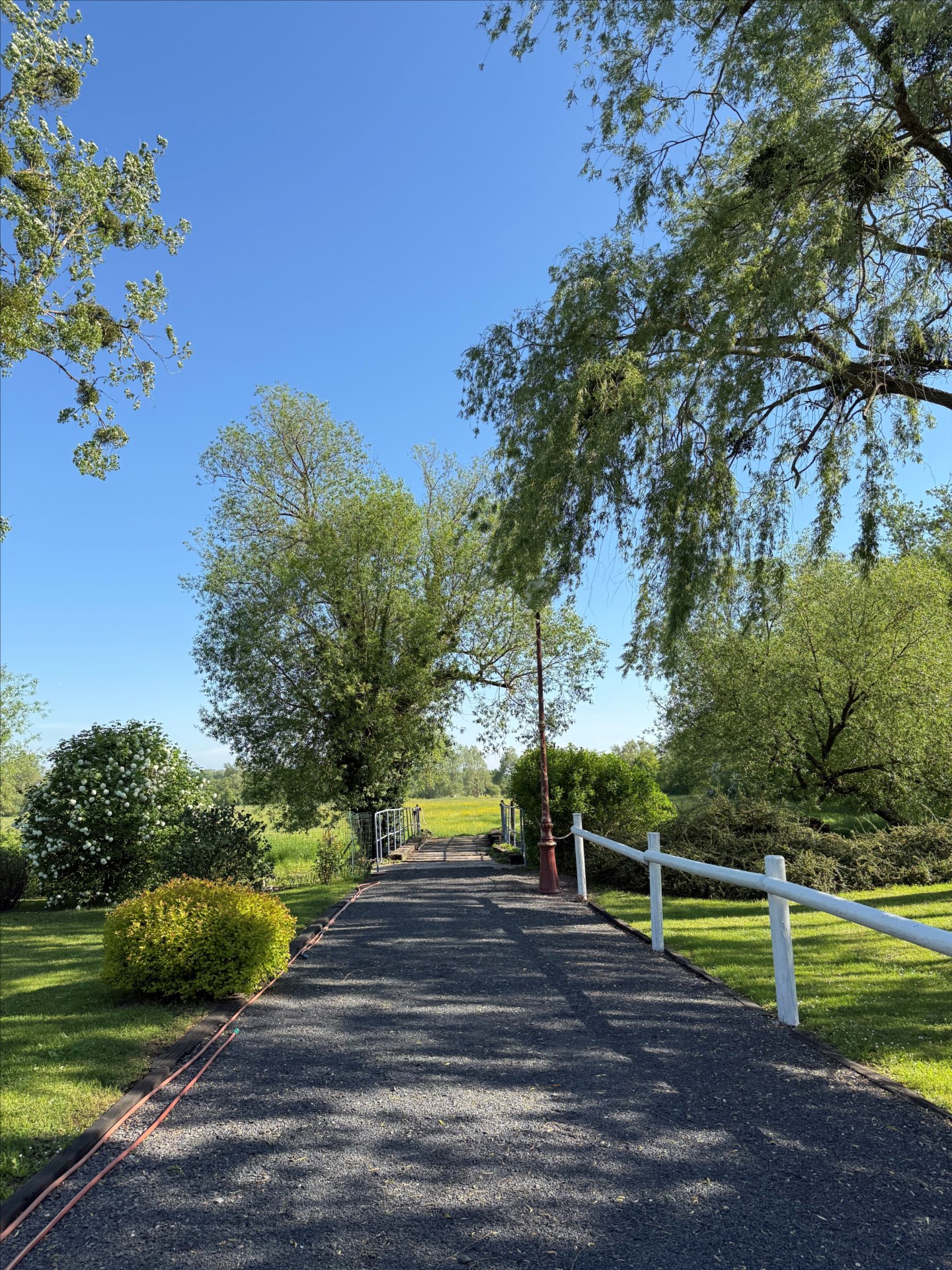 Terrasse, coin potager, jardin, un petit pont avec point d’eau sont autant d’atouts pour profiter des extérieurs.