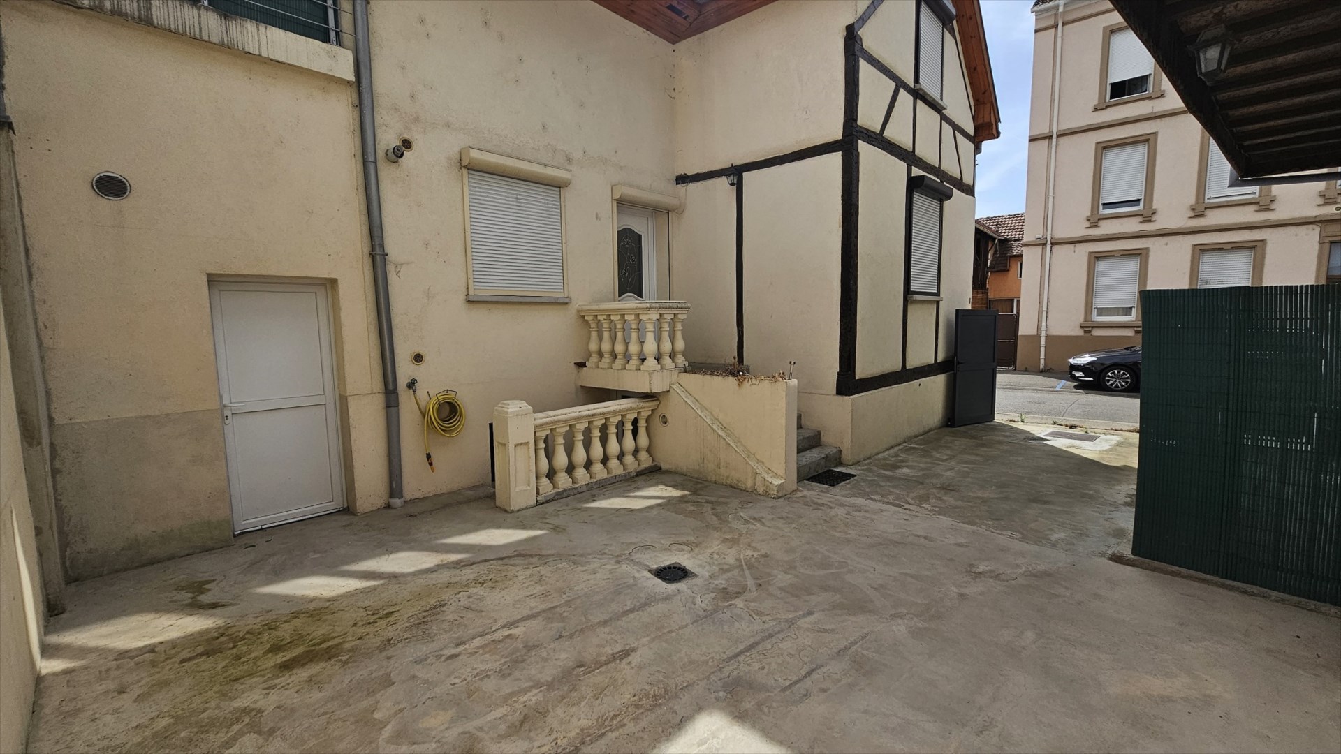 – A l’extérieur : une cour privée d’environ 40m² (parking + terrasse) et un espace cave (7m²).