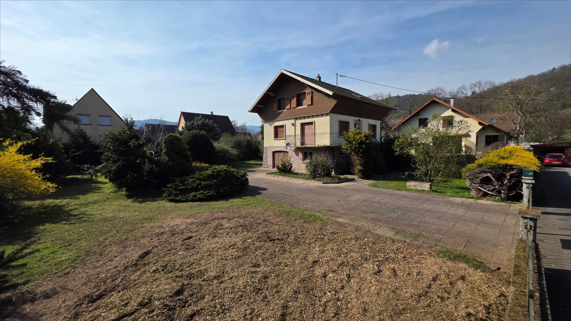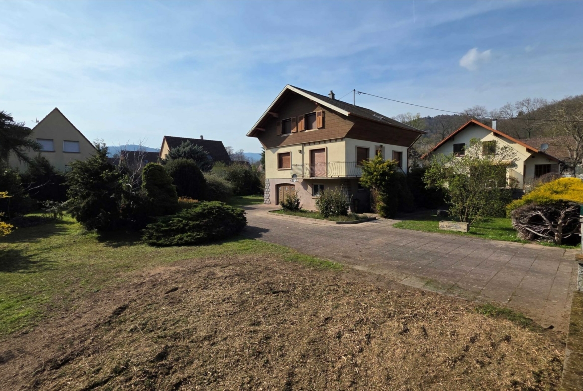 MUNSTER, à vendre en exclusivité par l’agence TRIPLEX. Maison des années 60 sur 3 niveaux implantée sur une grande parcelle d’environ 15 ares constructible.