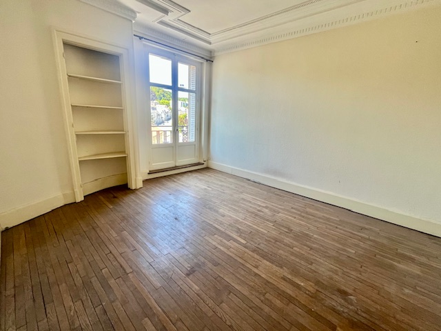 Dans bel immeuble de caractère avec ascenseur, grand appartement F3 de 102 m², situé au 3ème étage, comprenant une grande entrée, salle à manger, séjour, cuisine indépendante équipée, chambre, salle de bains, w.c. Chauff ind. Garage individuel.