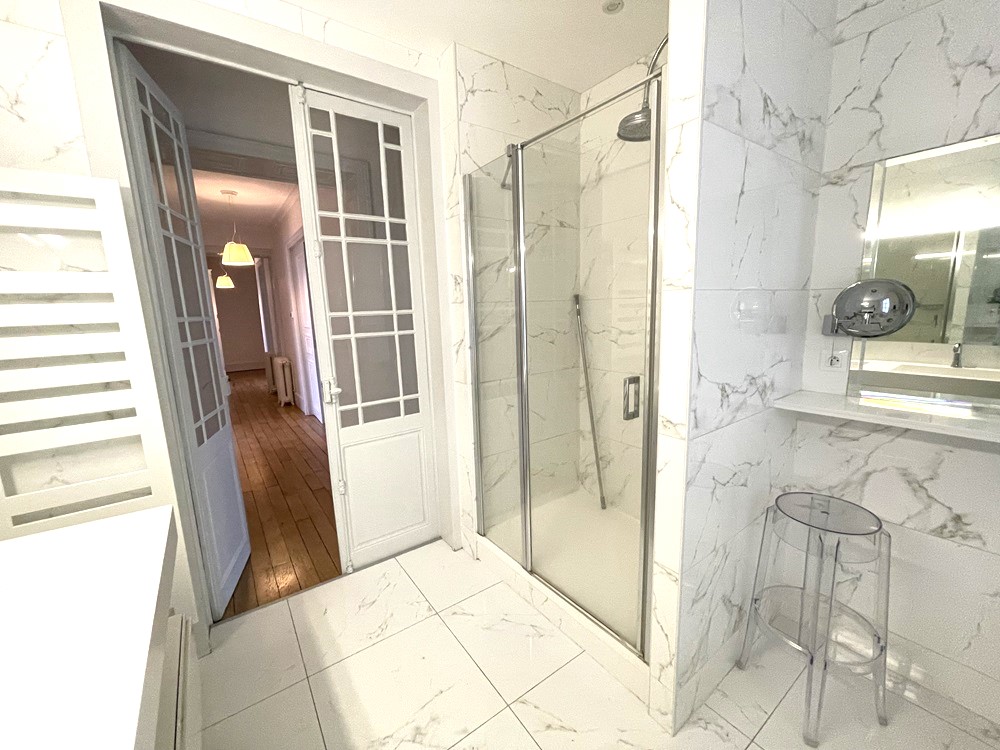 Nancy centre gare rue Mazagran, type F6 2ème étage comprenant entrée, salon, séjour, balcon, 2 chambres et 1 suite parentale avec salle d’eau, cuisine indépendante équipée, une salle de bains, une dépendance sur palier.