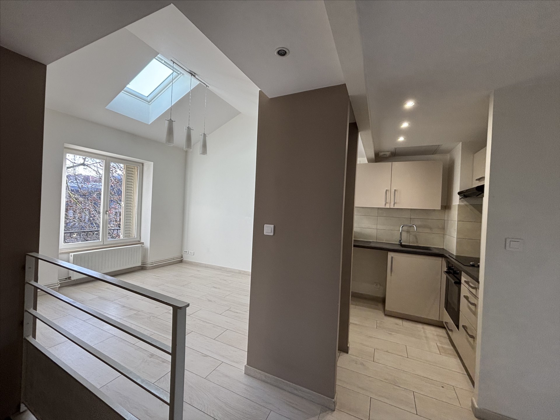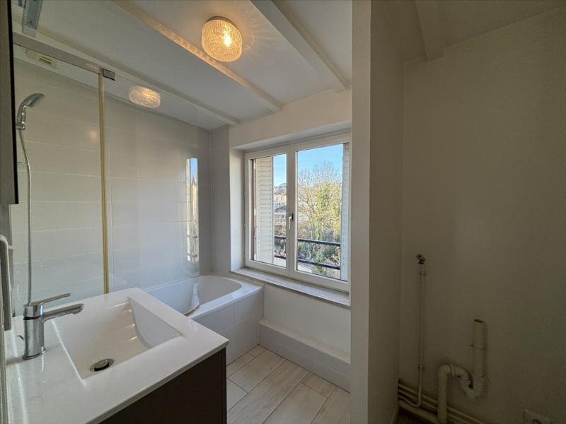 Dans petite copropriété apartement type F2 entièrement rénové avec goût par architecte comprenant séjour lumineux, belle cuisine équipée moderne, chambre, salle d’eau, chauffage gaz individuel. Proximité Tram-Blandan