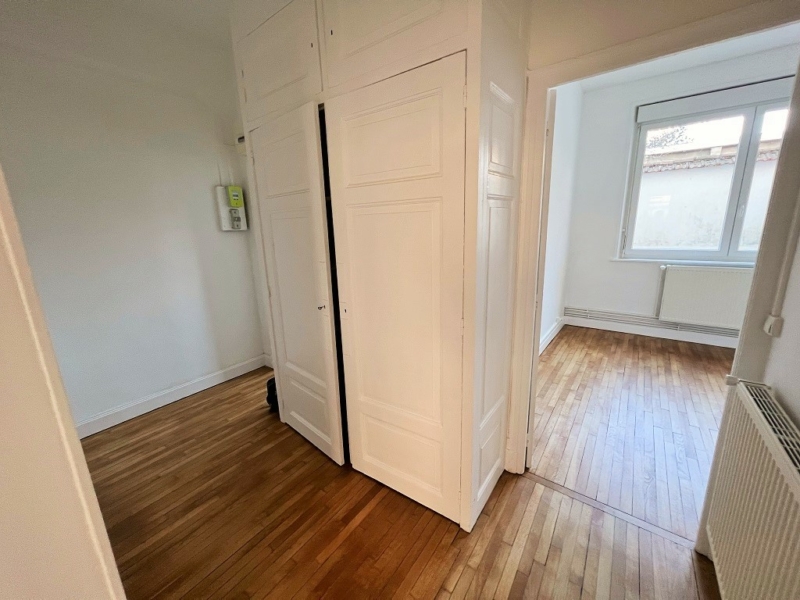 Dans petit immeuble appartement F2 rénové, première occupation, comprenant entrée avec rangement, cuisine équipée, chambre, séjour, salle de bains.Chauffage gaz individuel.