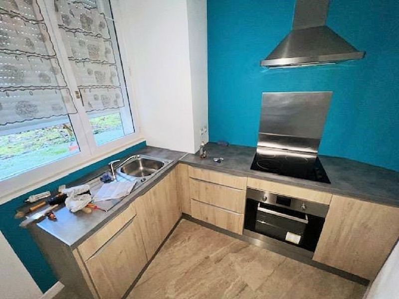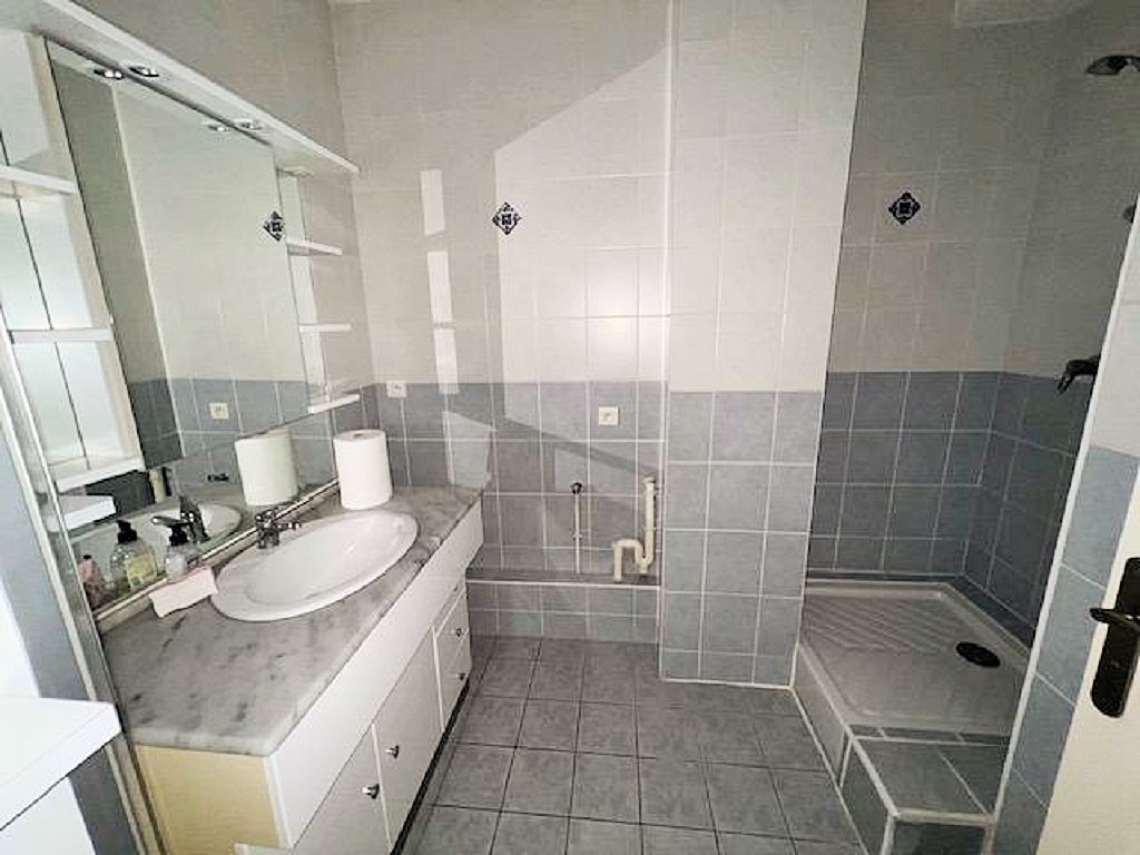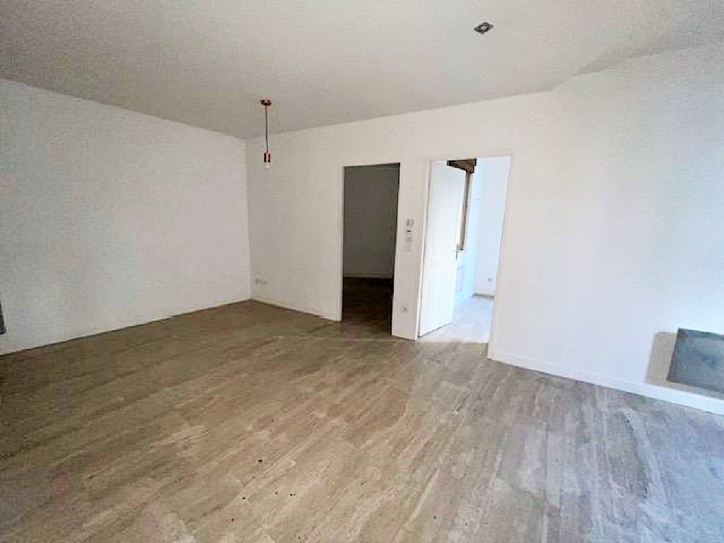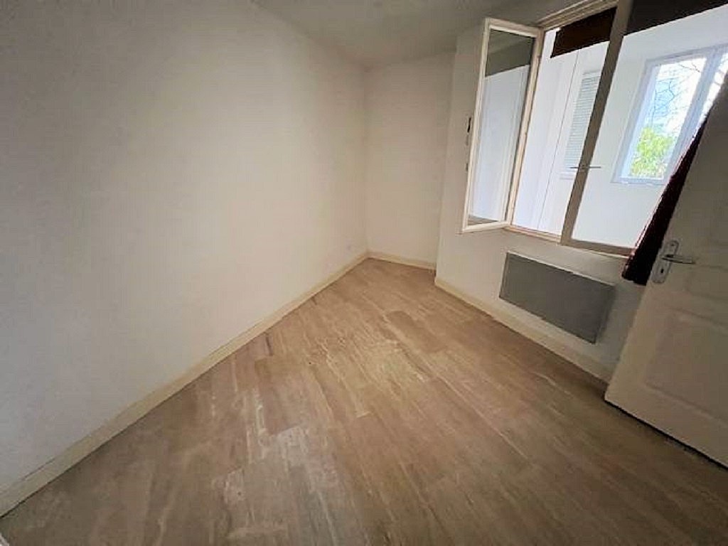 Appartement F3 rénové comprenant entrée, cuisine aménagée ouverte sur séjour, 1 chambre + 1 bureau, salle d’eau avec WC. Volets roulants électriques. Place de parking privative.