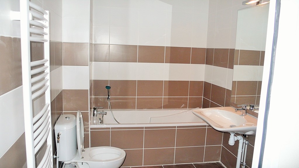 Appartement studio n° 102, en 1er étage comprenant une entrée avec placard, accès pièce principale avec cuisine équipée, salle de bains avec w.c.