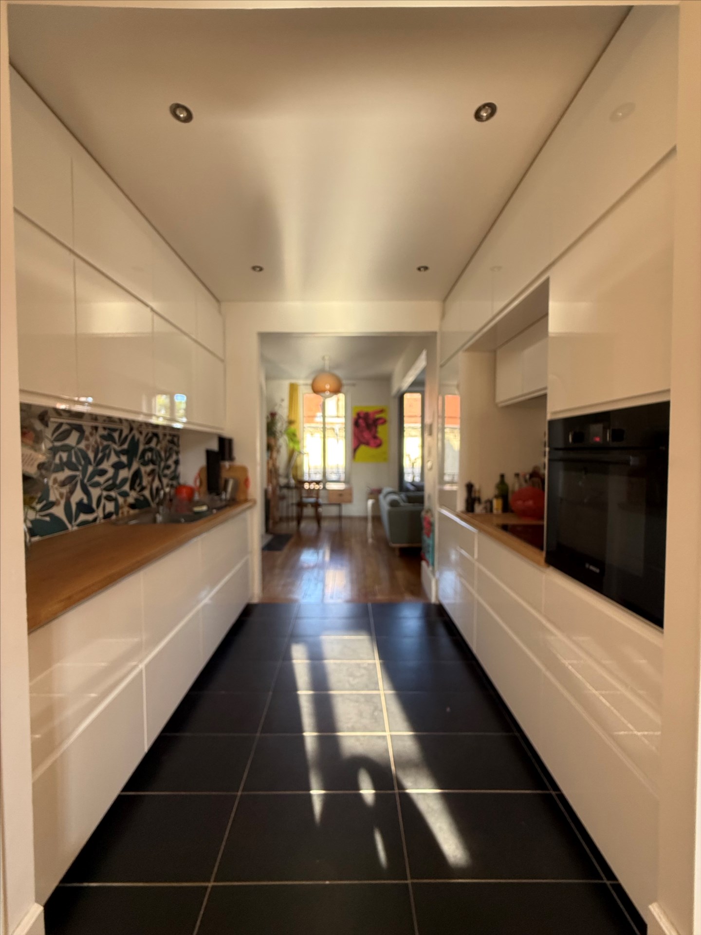 Situé au 2ème étage d’un petit immeuble, un appartement en duplex proposant :