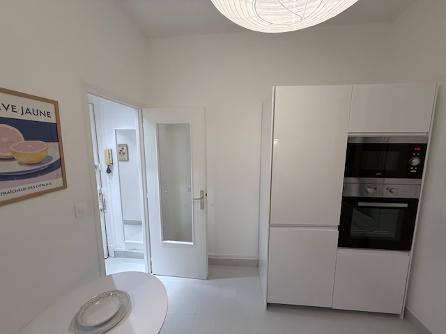 Situé au rez-de-chaussée surélevé d’un petit immeuble de caractère et sécurisé, il se compose de la manière suivante : une entrée, une cuisine équipée (plaques de cuisson, hotte, four, machine à laver, lave-vaisselle, micro onde, machine à laver sèchante), une salle d’eau, un W.C. séparé, un séjour, une chambre avec grand dressing. Une cour privative avec terrasse vient complèter ce bien.