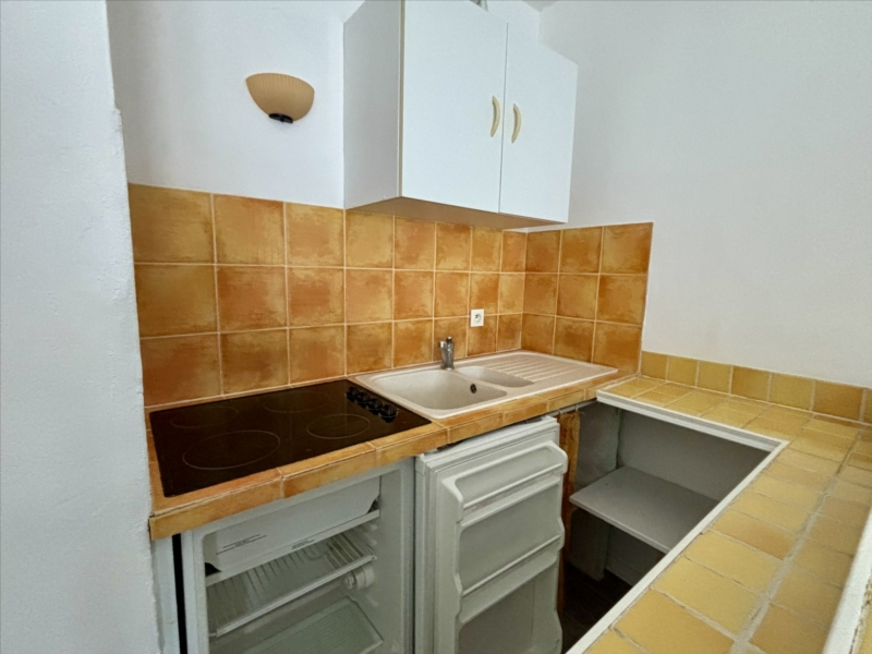 Composé d’une entrée avec rangements, une salle d’eau avec douche et WC, une pièce de vie donnant sur une kitchnette avec frigo et plaque de cuisson electrique.