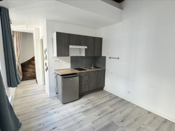 Situé au rez-de-chaussée d’un immeuble de deux logements dans un quartier calme, ce bien en bon état est composé un séjour lumineux, une cuisine indépendante, une salle d’eau et une chambre à l’étage.