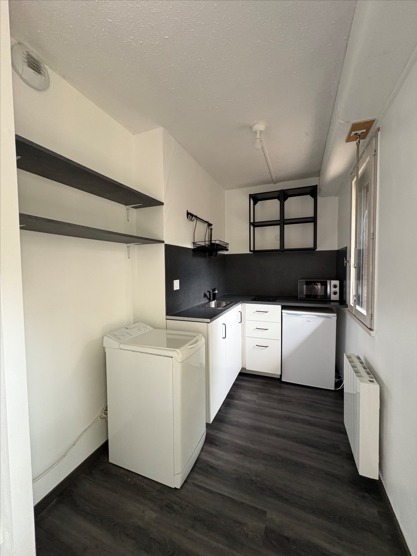 Situé au rdc d’une résidence des années 80 en très bon état avec ascenseur, il se compose d’une entrée avec placard aménagé, une salle d’eau avec WC refaite à neuf, une pièce de vie principale avec coin cuisine équipée (plaque, hotte, frigo).