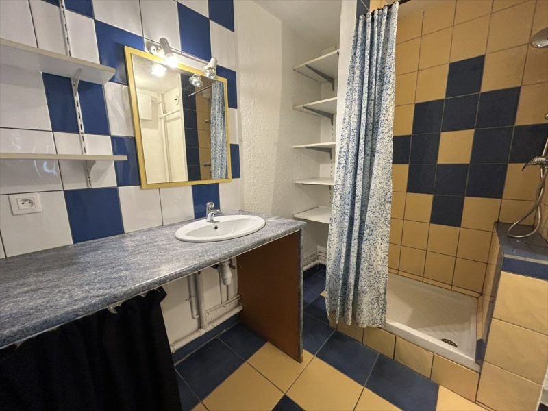 – Au 2ème étage : une entrée avec étagères, une cuisine indépendante équipée (four, plaque de cuisson et hotte), une pièce de vie avec accès au balcon donnant sur l’arrière, une belle chambre avec placards intégrés, une salle de bains avec douche, branchement machine à laver et toilettes.