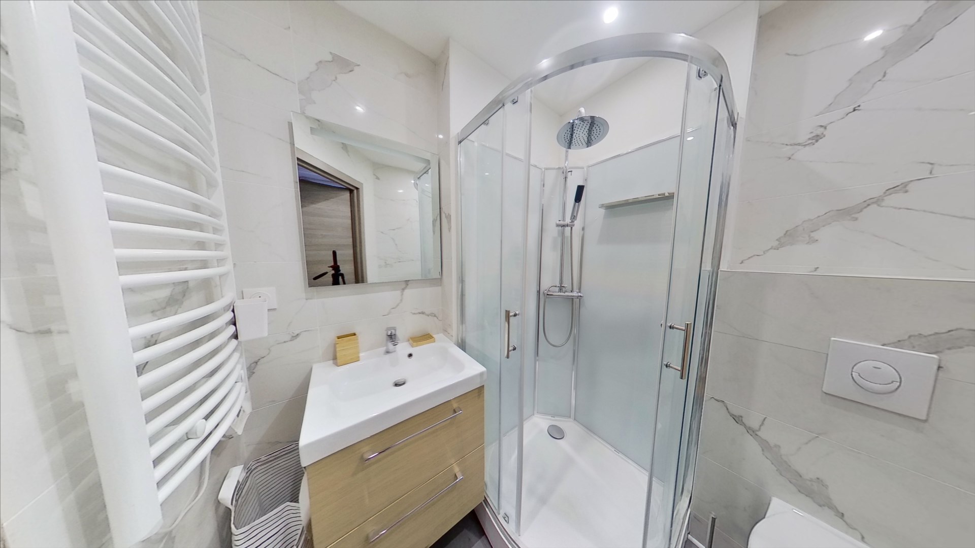 Situé dans un immeuble de caractère et sécurisé, il se compose de la manière suivante : une entrée, une cuisine équipée ouverte sur le salon (plaques de cuisson, hotte, four, micro-ondes, lave-linge, lave-vaisselle ), un séjour, une chambre avec salle d’eau attenante, ainsi qu’un W.C.