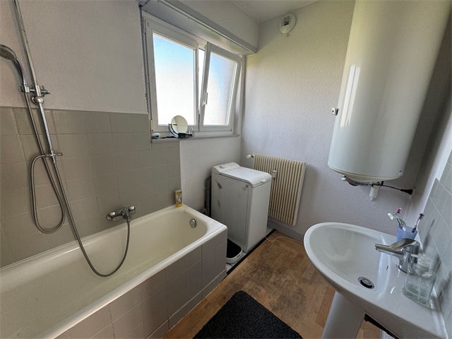 Dans un immeuble de 6 appartements (sans ascenseur), venez découvrir cet appartement 3 pièces d’une surface de 90,41 m² situé au rez-de-chaussée surélevé, comprenant :