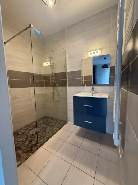 De plain pied, elle offre une entrée avec placard, une cuisine équipée ouverte sur le séjour en accès sur une terrasse et le jardin, 2 chambres avec dressings aménagés, une suite parentale avec salle d’eau privative et dressing, une salle de bains, un WC séparé.