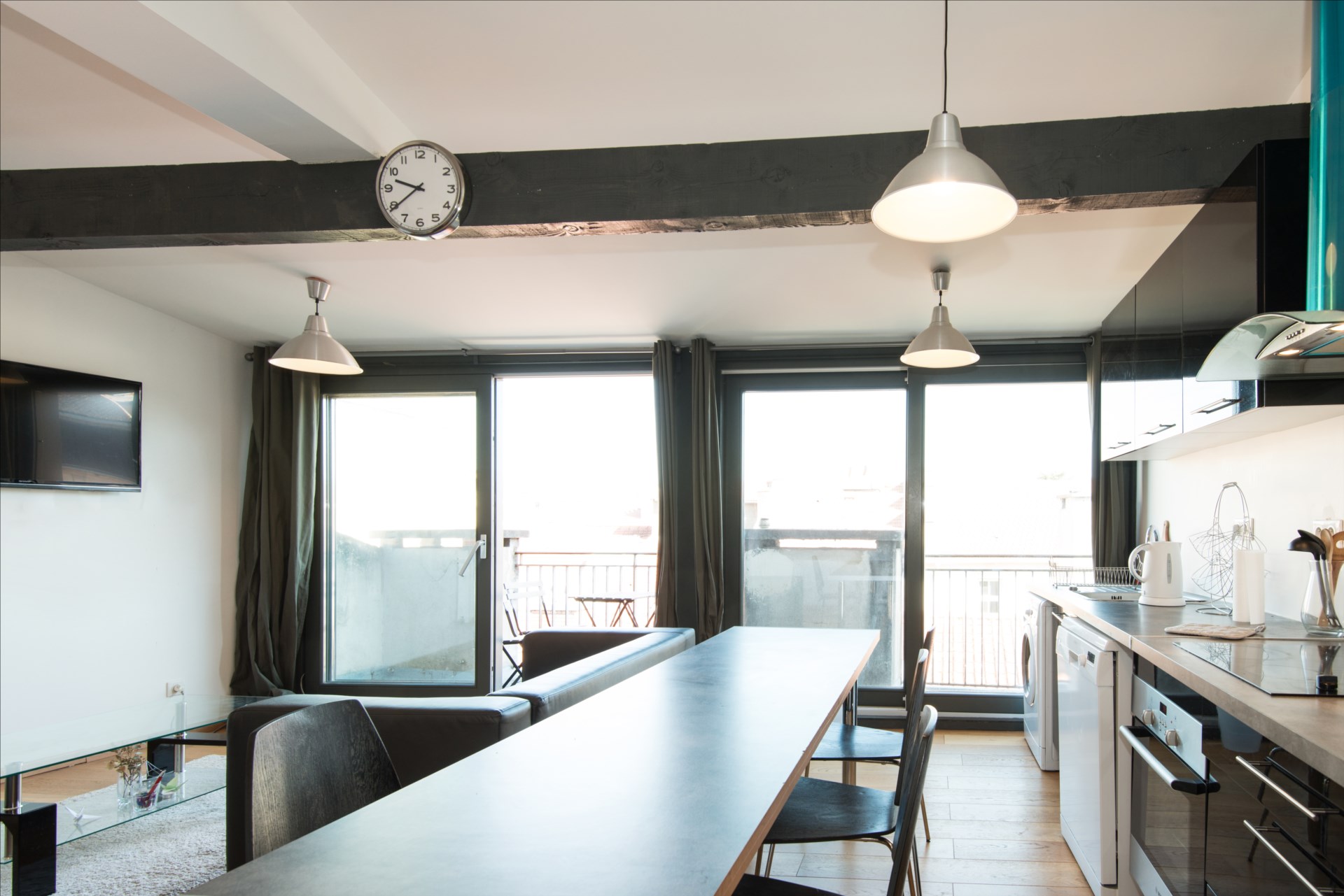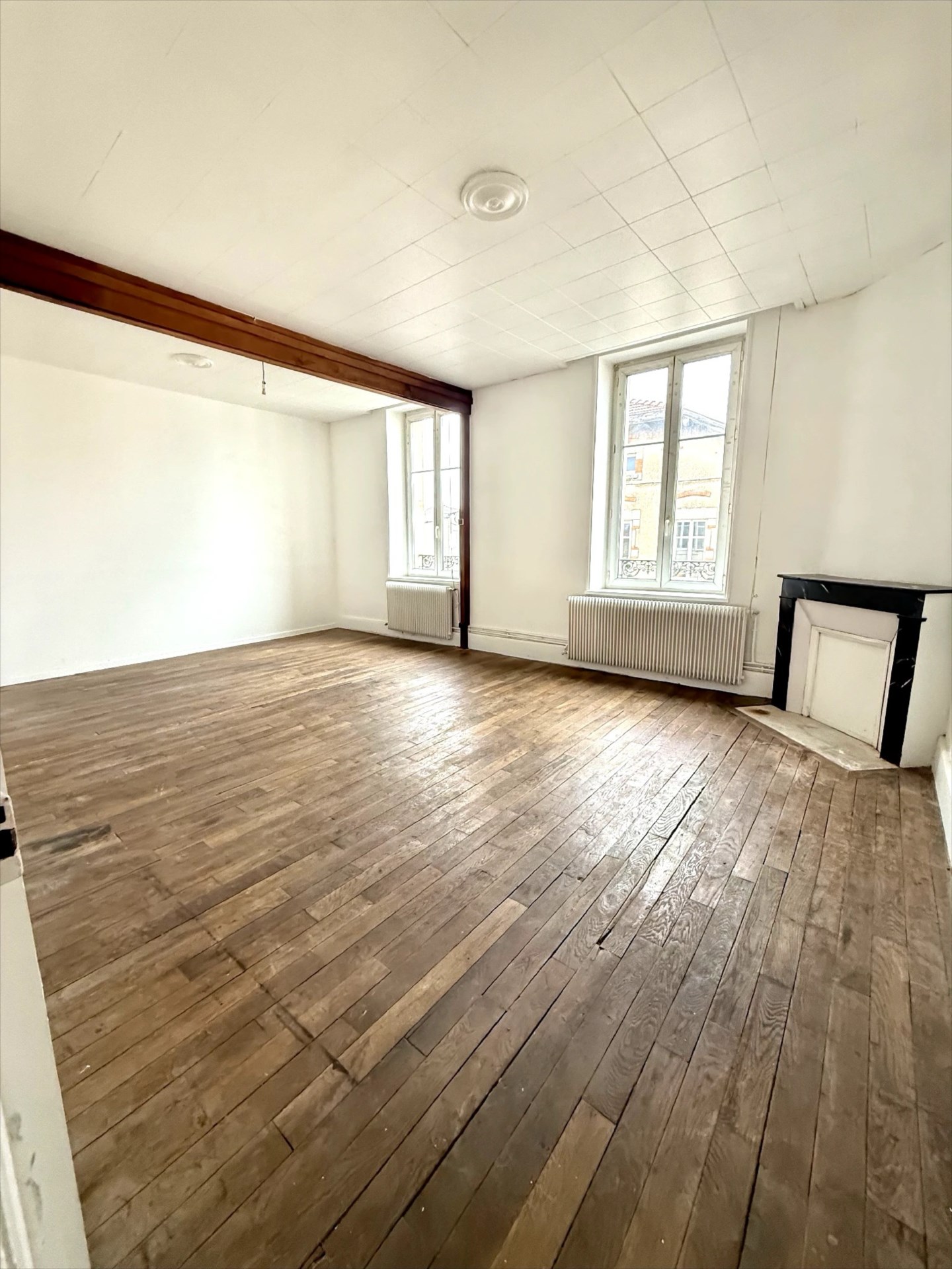 Appartement lumineux avec de beaux éléments anciens tels que parquet massif et cheminée décorative.